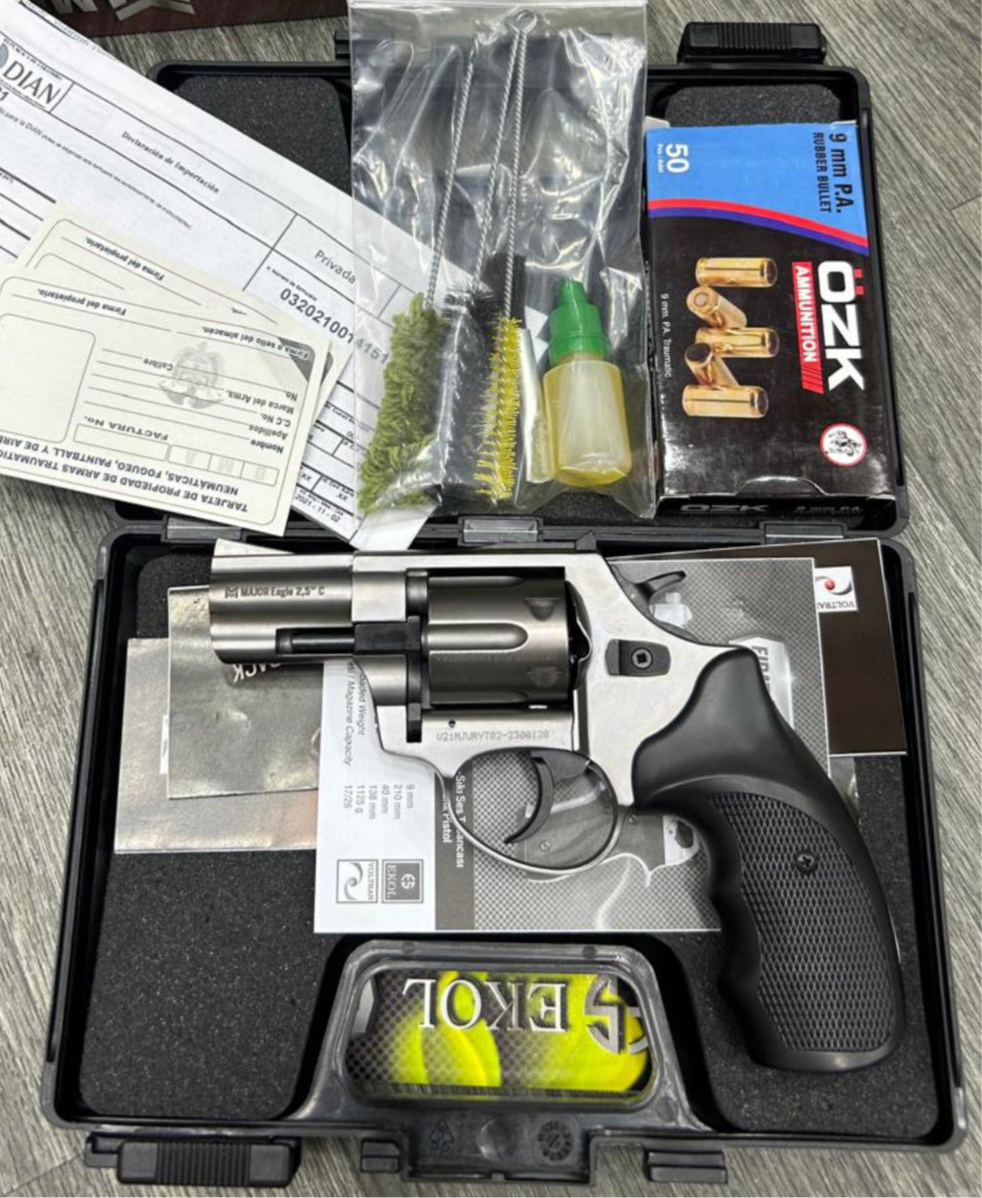 Las Pistolas traumaticas son Armas Deportivas que disparan proyectiles de caucho y son usadas en Colombia 🇨🇴 para la práctica de polígono o para defensa personal.