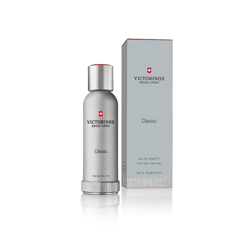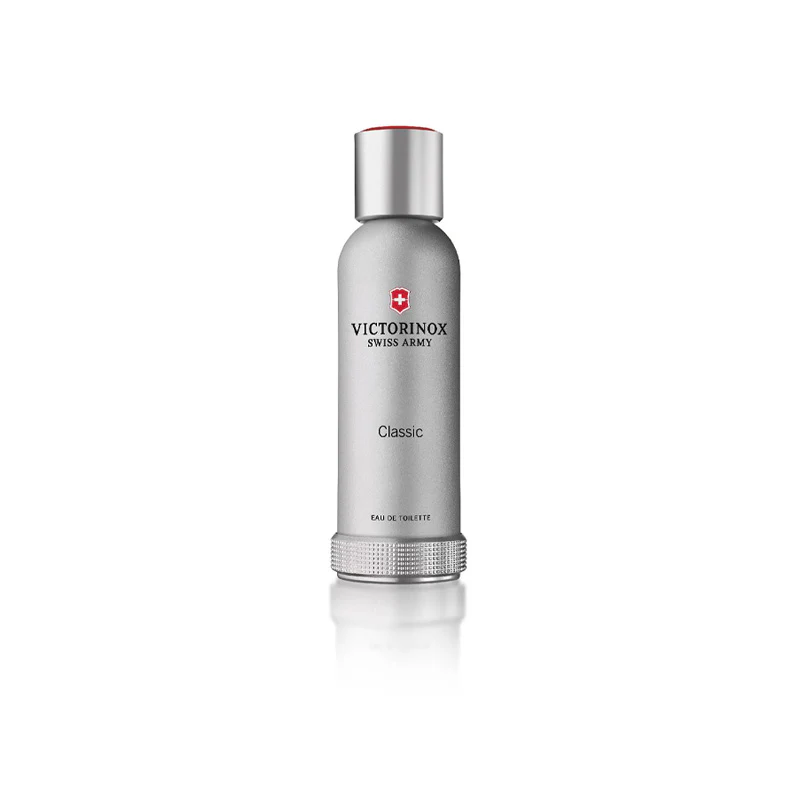 El frasco de Swiss Army Sport refleja la funcionalidad y el diseño clásico característicos de Victorinox, evocando la esencia de la marca suiza reconocida por su calidad y precisión.